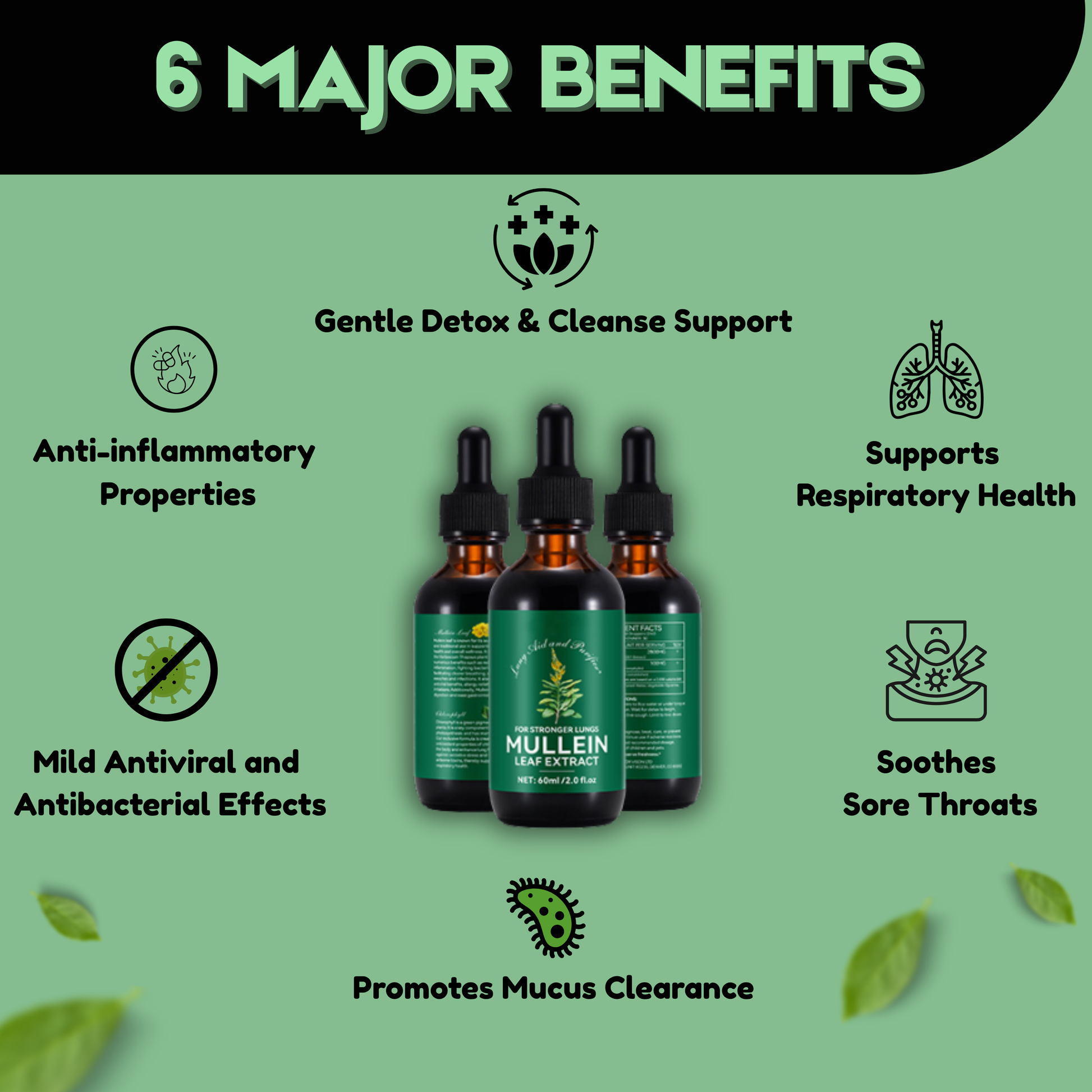 Mullein leaf extract is traditionally used to support lung health, help clear mucus, and promote respiratory comfort.